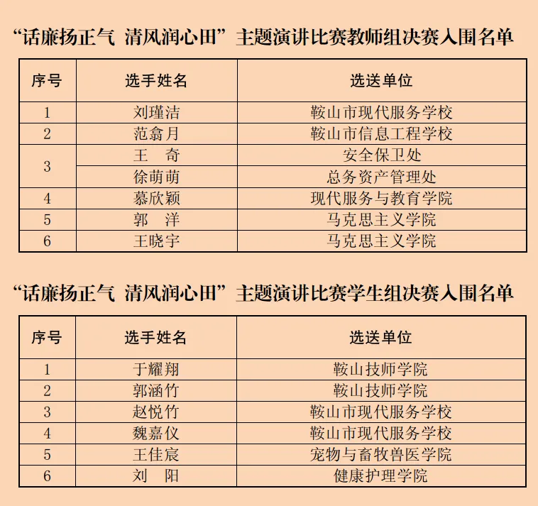 名单公布!“话廉扬正气 清风润心田”主题演讲比赛复赛成绩揭晓!